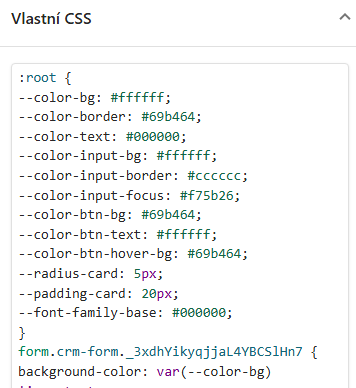d) Vlastní CSS - je zde i možnost pro programátory si tyto údaje naformátovat sám
