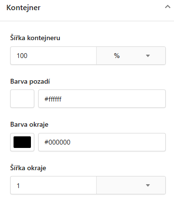 a) Kontejner - lze zvolit šířku formuláře, barvu pozadí, barvu a šířku okraje.