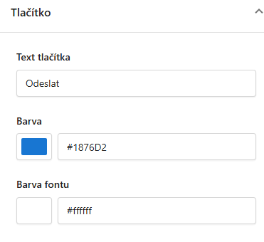 c) Tlačítko - Zde zvolit text tlačítka, které formulář odešle, jeho barvu a také barvu textu