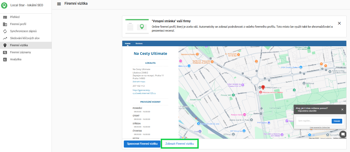 Vizitku naleznete v Local Star, v levém menu "Firemní vizitka".
