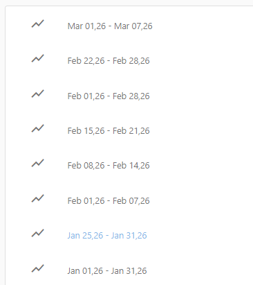 Zde je archiv reportů online reputace. Na jednotlivé reporty lze kliknout, otevře se vám Souhrnný report v Online Star.