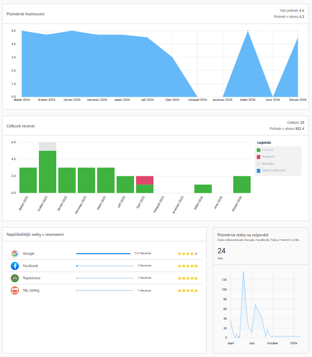 Průměrné hodnocení - ukazuje průměrný počet získaných hvězdiček v recenzích za zvolené časové období