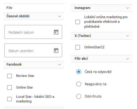 - typu sociální sítě - lze vyfiltrovat dle konkrétní sociální sítě, např. Facebook nebo Instragram