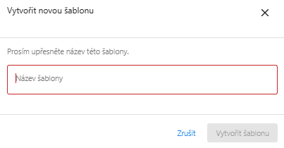 Po kliknutí na tlačítko "Uložit jako šablonu" vyplňte v otevřeném okně název, pod kterým si přejete šablonu vytvořit. Šablona se objeví v přehledu šablon (Nástroje -> Šablony).